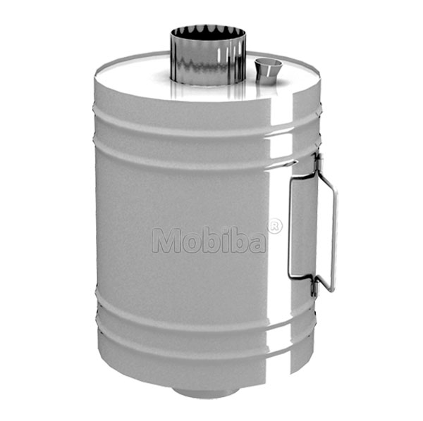 По форме это- циллиндрический бак из жаропрочной листовой стали AISI 430 толщи-ной 0,5мм., через переходники встраиваемый в дымоход с диаметром трубы 90 мм. Рабочий элемент Парофона – встроенный парообразователь из нержавеющей стали AISI - 430.