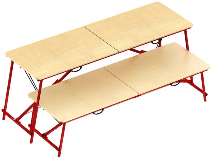Полоки ПС-350 (низкий) и ПС-700 (высокий) можно использовать одновременно, чтобы создать 2-х уровневую конструкцию с лежанкой и подставкой для ног. Или можно высокий полок использовать как стол во время обеда, а низкий использовать как лавку.