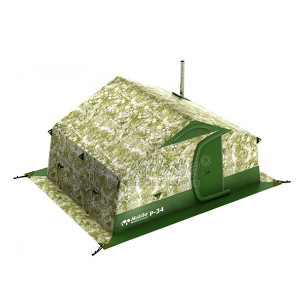 Мобиба Р-34 - двухслойная зимняя отапливаемая палатка, с двускатной крышей, вместимостью до 6 человек, предназначенная для проживания в любых погодных условиях. Особенность данного изделия заключается в его большом жилом объёме, при небольшом весе и транспортных габаритах. Это позволяет транспортировать его на снегоходах, либо других транспортных средствах, имеющих ограничение по весу и объёму багажа. Идеально подходит для оснащения небольших групп геологоразведчиков, мобильных групп МЧС, МО, охотников, рыбаков. В Р-34 имеется возможность увеличения сопротивляемости снеговой нагрузке, путём установки дополнительной подпорки в центральной части палатки (подпорка входит в комплект).